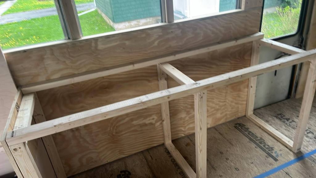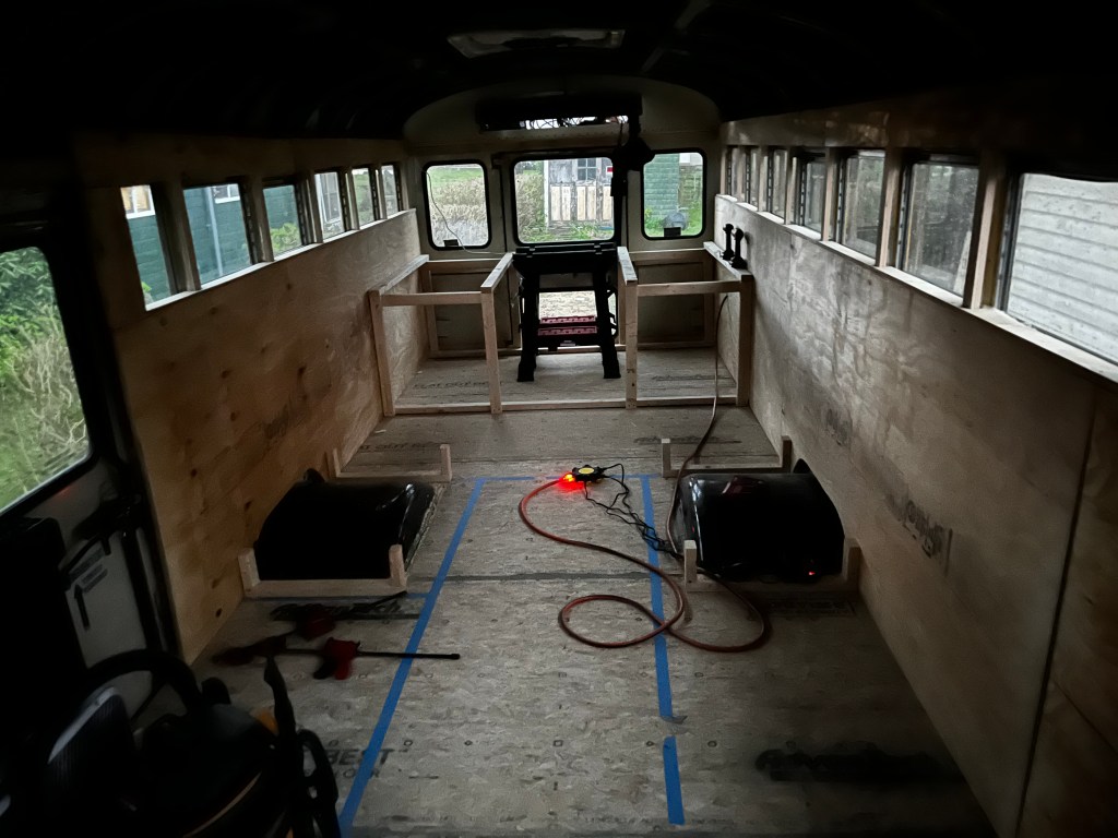 Since I have to wait on hard to get components for the electrical, I cut up boards to make my bed frame. Ive been holding off until I was confident I didnt need to put anymore large sheets of plywood into the bus..I think im there.